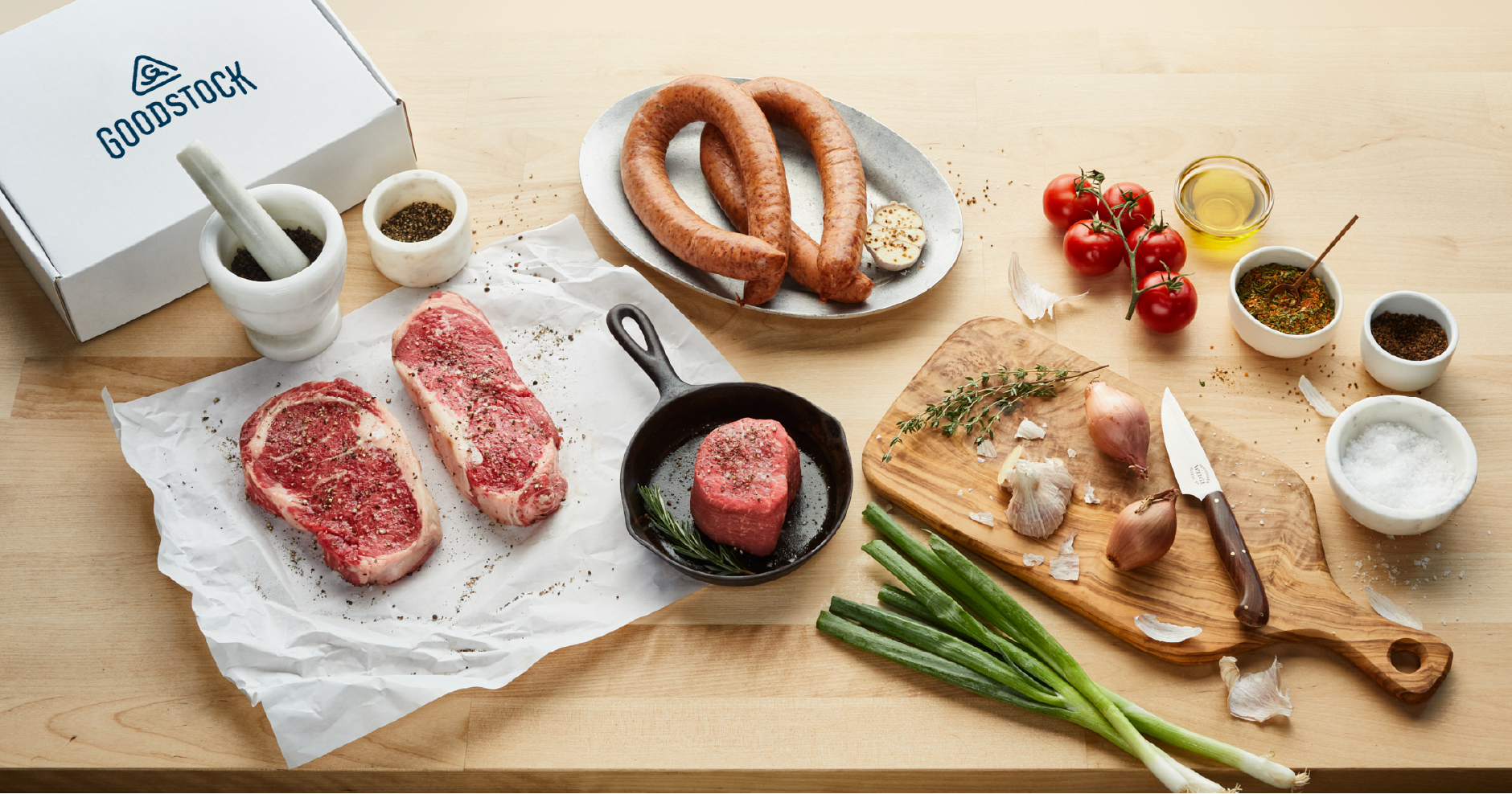 When a baseball hall-of-famer and master cattle rancher couldn’t find a consistently good steak, he decided to start his own beef company. The company’s newest product line and craft butcher shop are the culmination of their search for better beef and feature only cattle raised and produced to their incredibly high standards for quality, flavor and animal welfare. We worked with them to create the name and visual identity for Goodstock inspired by their ranching roots and their commitment to making sure everything they offer is worthy of your dinner table. You can see the work and pick up a ribeye or two at the butcher shop in Round Rock, which features interior design by the talented folks at McCray & Co.